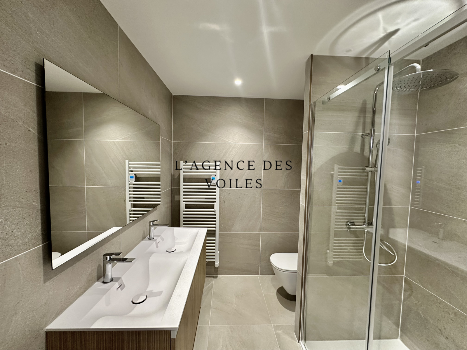 Découvrez ce grand T3 de 110 m2 habitables ainsi que sa terrasse de 22 m2 exposée sud. Au premier étage d'une résidence intimiste et sécurisée de 5 logements avec ascenseur. L'appartement traversant, offre un vaste séjour/cuisine lumineux de 51m2 donnant sur la terrasse. Chaque chambre dispose de sa salle d'eau dont la master bedroom de 22m2 avec un wc indépendant et placards aménagés. Son emplacement de premier choix au calme et la qualité des prestations font de ce bien un produit rare. A visiter rapidement.