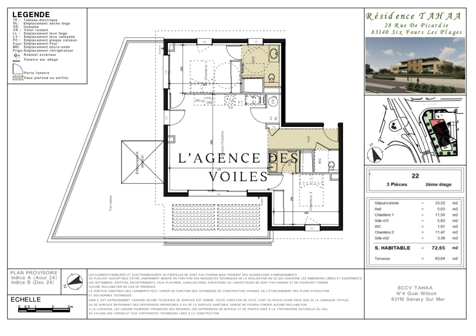 Six-Fours-les-Plages (83140) Six-Fours-Les-Plages, appartement 3 pièces 72m2 avec 64m2 de terrasse au dernier étage avec ascenseur