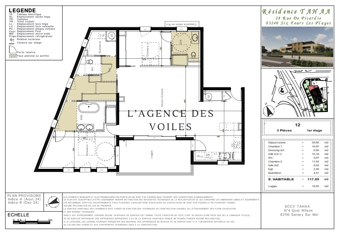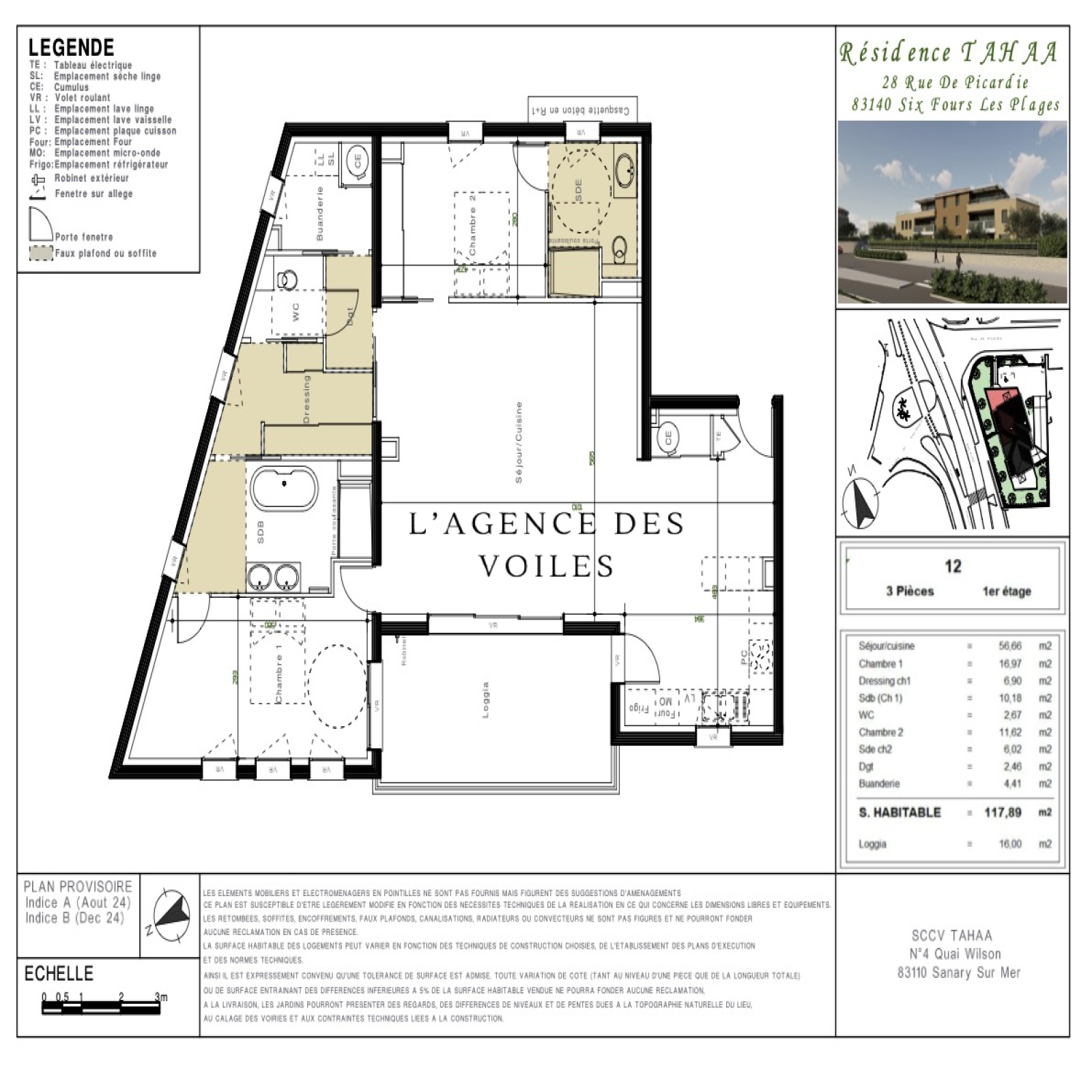 Il se compose d’un vaste séjour-cuisine de 57m², un cellier, une chambre avec sa salle d’eau et son WC indépendant. La masterbedroom de 36m² vue mer, dispose d’un dressing aménagé, d'une salle de bains avec baignoire et douche.